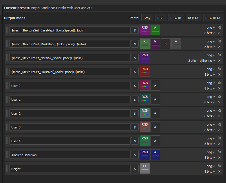 This is a Substance Painter export profile configured for Unity/VRchat and NeosVR.